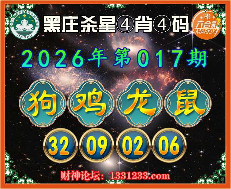 017期:《黑庄杀星》 ⛩️④肖④码⛩️【鸡龙鼠】【32.09.02.06】开:狗32