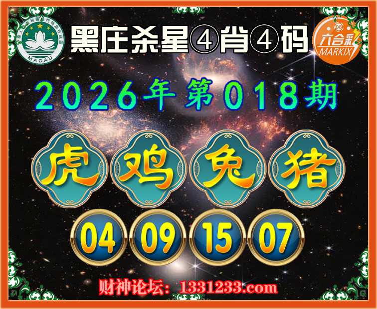 018期:《黑庄杀星》 ⛩️④肖④码⛩️【虎鸡猪】【04.09.15.07】开:兔39