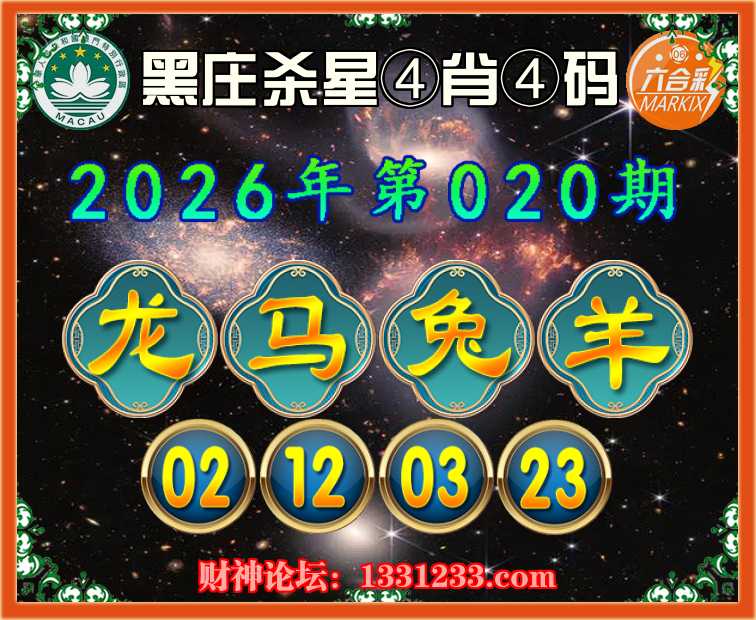 020期:《黑庄杀星》 ⛩️④肖④码⛩️【龙兔羊】【02.12.03.23】开:马12