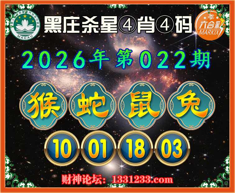 022期:《黑庄杀星》 ⛩️④肖④码⛩️【猴蛇兔】【10.01.18.03】开:鼠18
